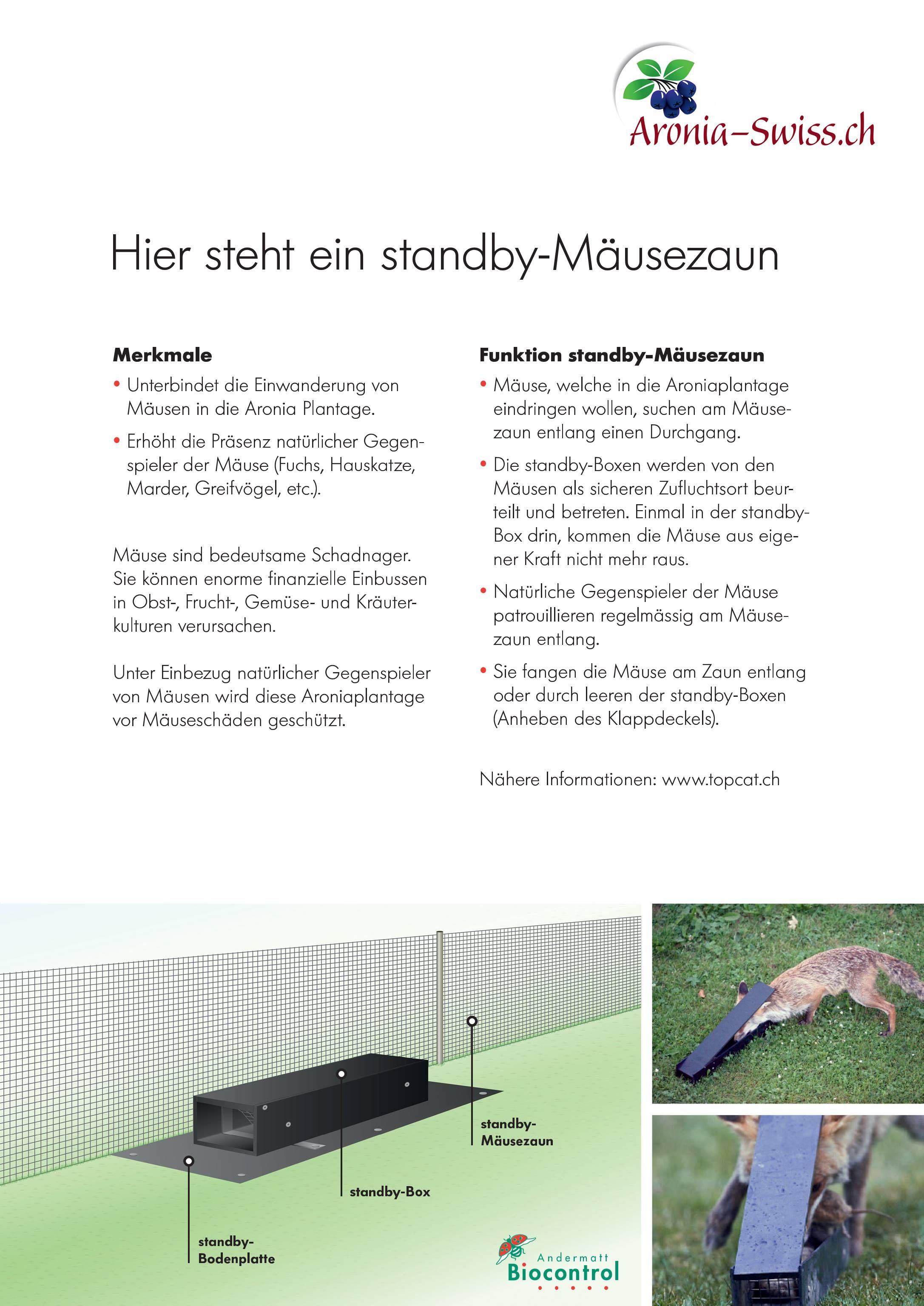 Der Aufwand für die Bekämpfung der Mäuse in den Aronia nimmt nicht ab. Die oberirdische Einwanderung und regelmässige Wiederbesiedlung der Plantage ist ein grosses Problem. Mit einem Mäusezaun versuchen wir diesen Druck zu reduzieren.